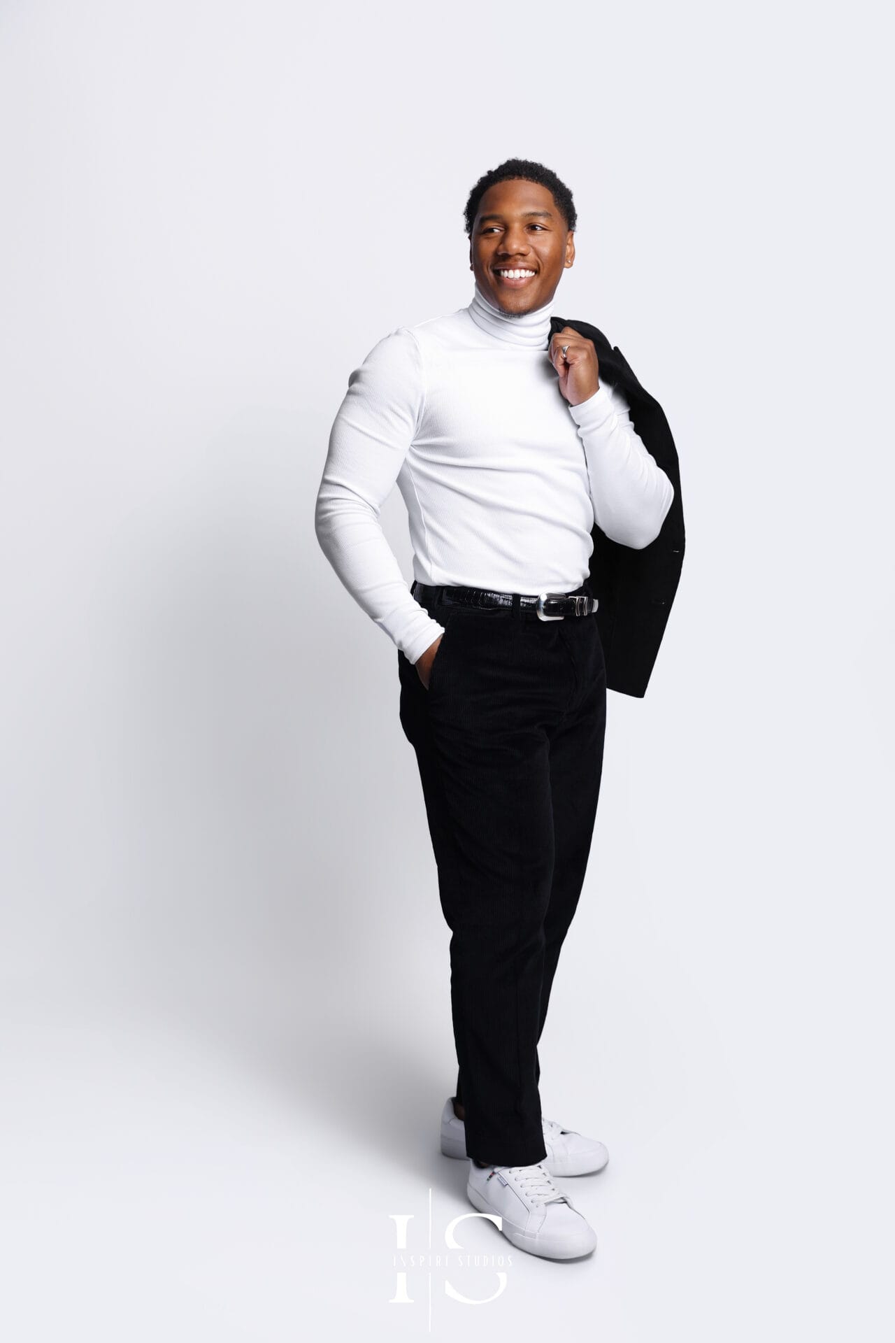 Please note that outfits are not provided for men’s photoshoot sessions. We recommend bringing your own clothing that reflects your style and the look you want to achieve.